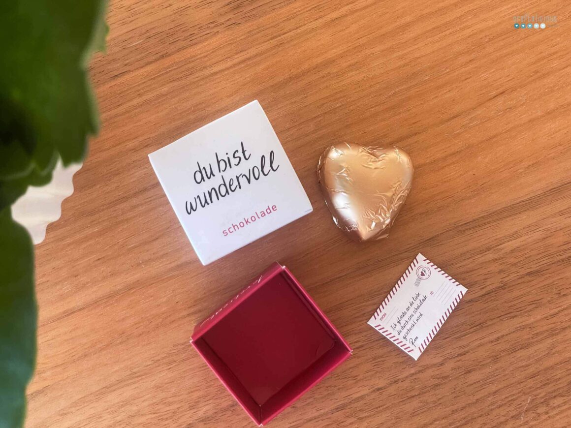 It’s a tiny little box with one chocolate heart. It says “You are wonderful”.
