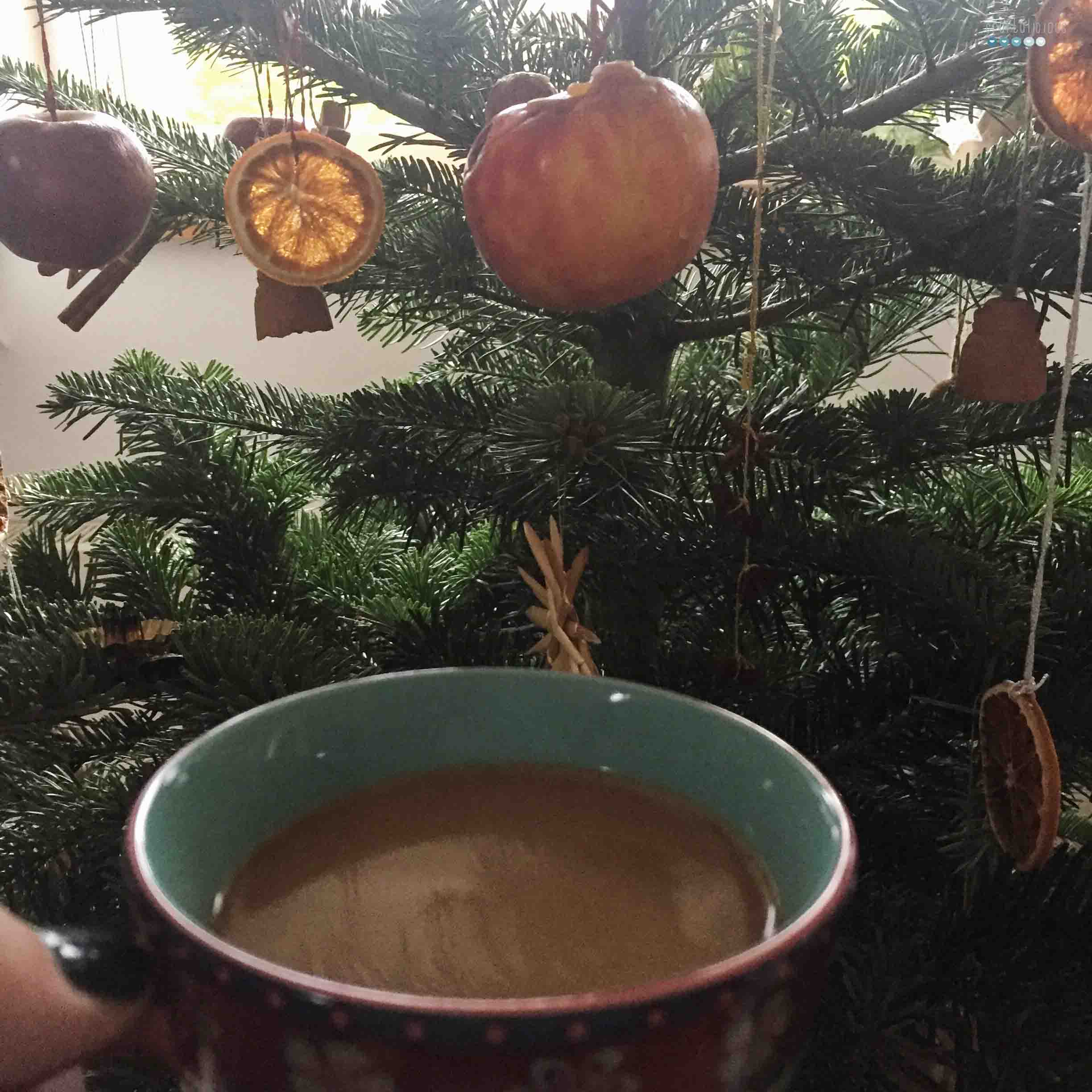 I do not know how long this practices lasted. There was a year when I had an idea for a different decorated tree and suggested it to my mom. That was the year when tradition changed and my mom and I started to decorate it together. The “new” tree was decorated mainly by natural things: dried fruits, pinecones, nuts, cinnamon sticks, star anise and such. What we kept was the real candles. Instead of the Christmas balls we used apples. My parents still do that and when I spent Christmas with them, that is the tree I am seeing. And often it is still my “chore” to decorate.