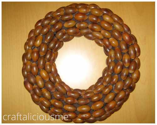 wow, what a cool idea! I would like to make one of these, but the idea of walking through the forest in the cold to pick enough acorns doesn’t really seem appealing right now! If I was up for it though, I would love to spray-paint it a funky color! Yours is very pretty, too.