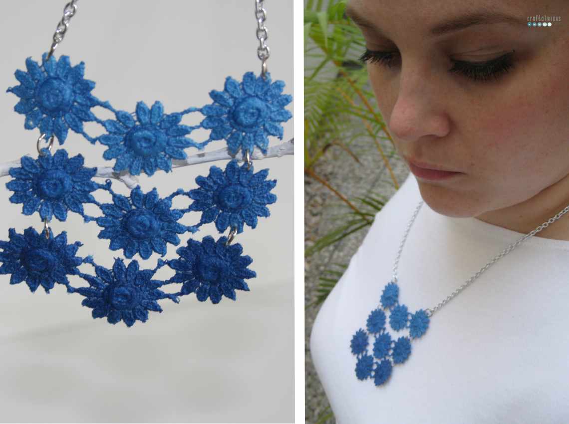 If you are a fellow Pinterest addict you’ll probably came across jewelry and accessories made of lace. However I’ve pondering this idea longer than I have my Pinterest account – I just didn’t know what to use to make it stiff. Duh me, I say.