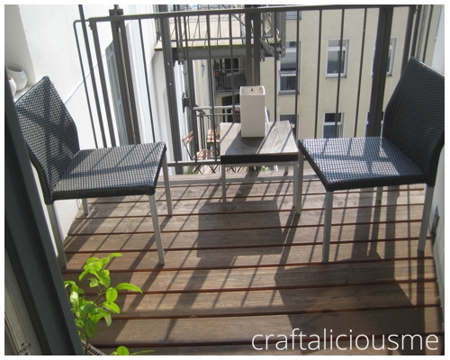 Auf unserem Balkon sieht es noch ziemlich trist aus. Dennoch werden wir hier am Wochenende die Sonne und Ruhe (von Bauarbeiten) genießen. Ich denk ich werd die Kräutertöpfchen mit Saatgut füllen.