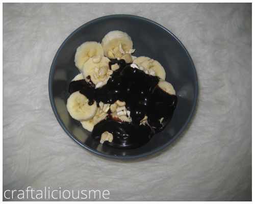 Und dann noch ein bisschen was für die Seele. In diesem Fall Banane, Schokosirup und ne Handvoll Cashews.