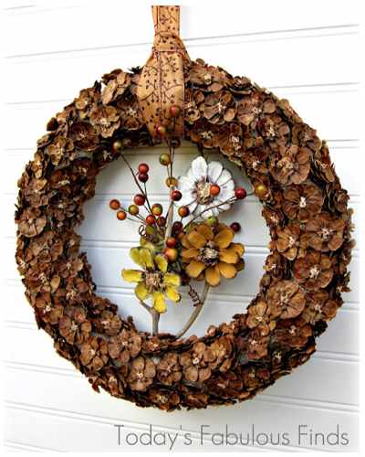 photo credit: Janet over at Today’s Fabulous Finds has raided her Grandma’s backyard to make this pinecone wreath.Those two were not yet so christmasy (it’s not a word, is it?!). You can make those wreaths as fall decoration and then just add a touch of glamour and sparkling and voila christmas. For the busy people among us… Now two with a more seasonal touch.