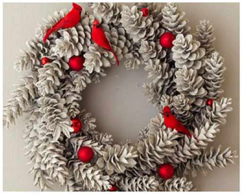 photo credit: Xenia has made a regular pinecone wreath her own by adding sparkles & colorI like the elegant look of white and red. Reminds me of Snow White. The next one really speaks to me