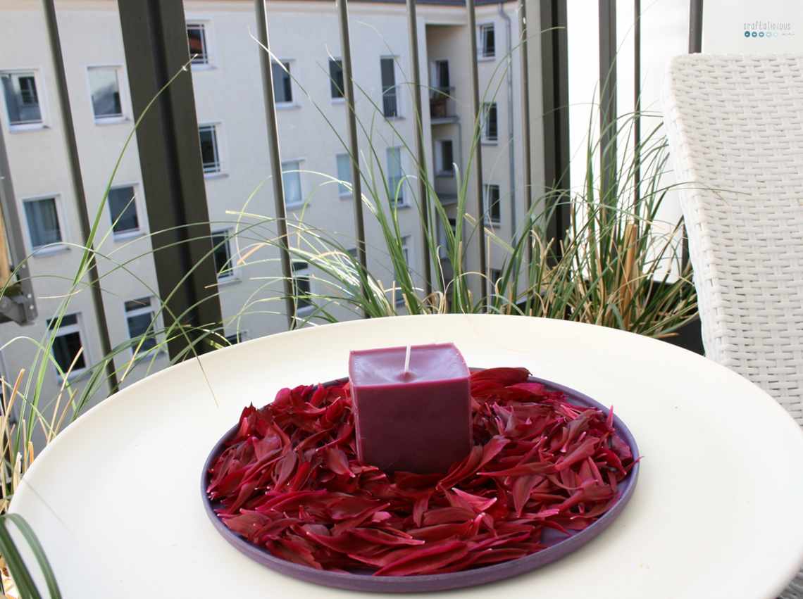 Bonus: if you want to add some special effects do it now. I added some glitter before pouring wax and sprinkled some on top. You could add all materials that won’t rot like coffee beans, dried flowers, glitter, toys and what not. Just make sure they don’t start a fire.