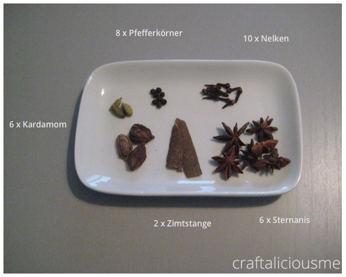 Bei meinen heute geschlürften Chai Latte habe ich mich von cadoohs Rezept inspirieren lassen.