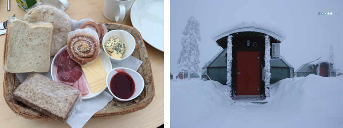 The glass igloos: We stayed at Golden Crown Levin Iglut which is located on a hill top with a beautiful view over the valley – if there are no clouds. Better pictures can be seen here: http://leviniglut.net/en/
