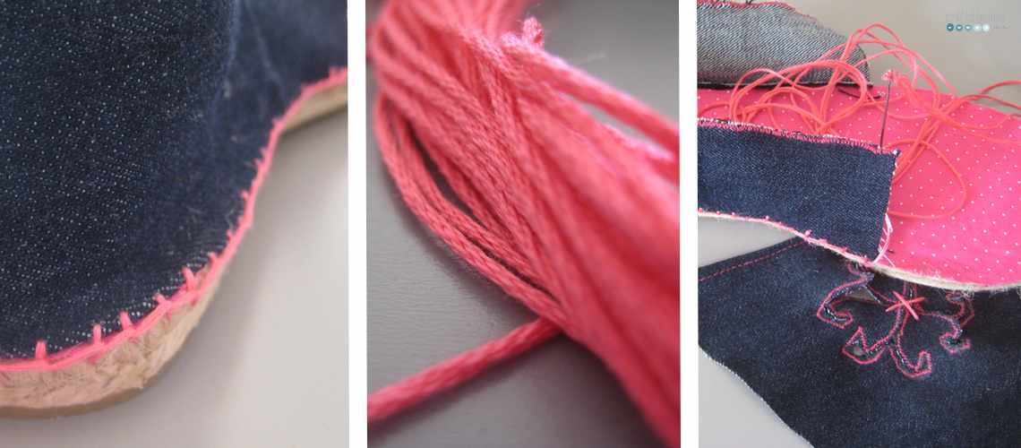 I first wanted to to some white version but than denim jumped at me. And I had this bright denim-pink color combination in my head and it would not leave. So I actually had to leave the house to get the embroidery thread.