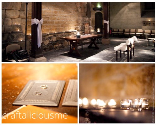 Our registrar was really great, would have even told (parts) of the ceremony in English for our out of country friends and decorated the room with over 50 candles. We only threw in the two furs and added a bow to the wooden pillars. Two big candles on the desk and voilá. Our guests had some tissue on their chairs. But somehow no photo… sorry.