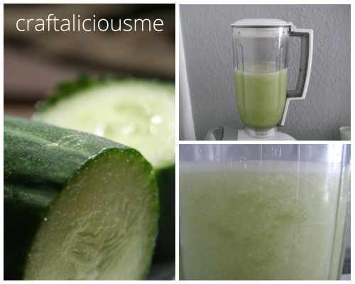1. Add water, sugar and cucumber into a blender and puree.