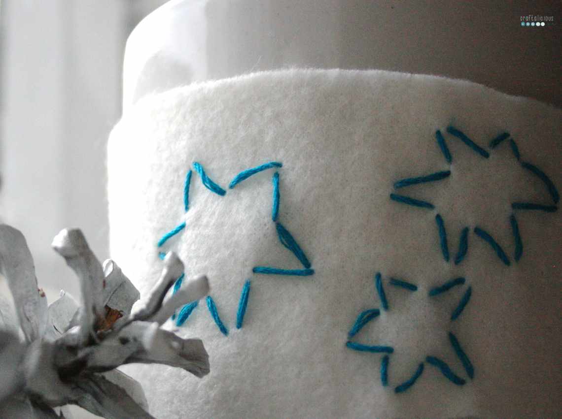 My stars are stitched free handed – as you have probably guessed. The book suggests a lot of different stitches and I think I like to try some more. But for today I rather drink some tea!