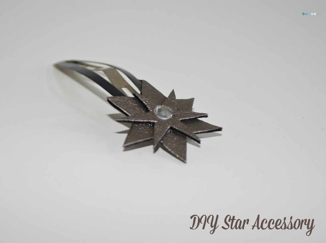 Anyway, paint your hair clip and let dry. In the meanwhile cut a star or two from your faux leather. I decided to stack two stars and a rhinestone by gluing it with textile glue. Let dry before attaching to your hair clip and … Oh no wait, you’re already done.