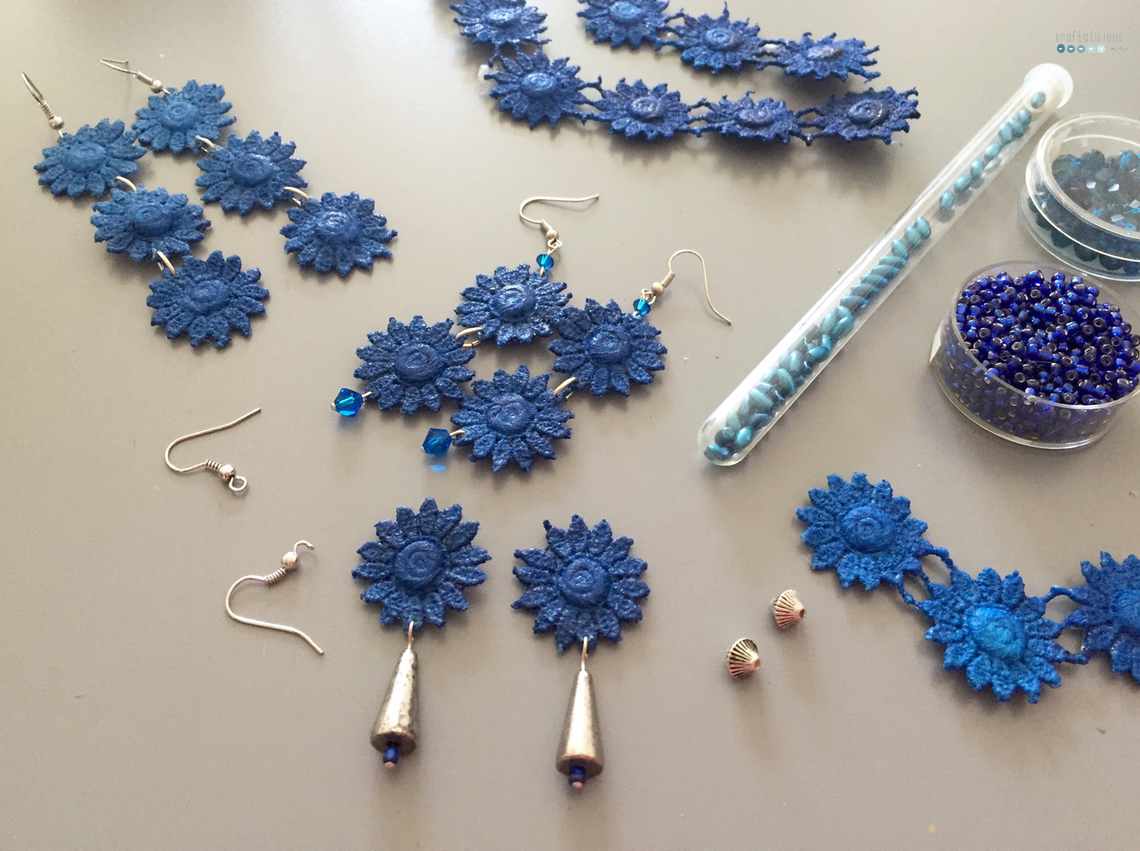 And while watching I had an really creative afternoon on Thursday and made lots of new jewelry pieces. Remember my lace necklace? I had dyed a bit more of the lace back then but never got around to making something out of it. Oh and I was on a roll. Only stopped because I was missing the right beads to go with them in the end.