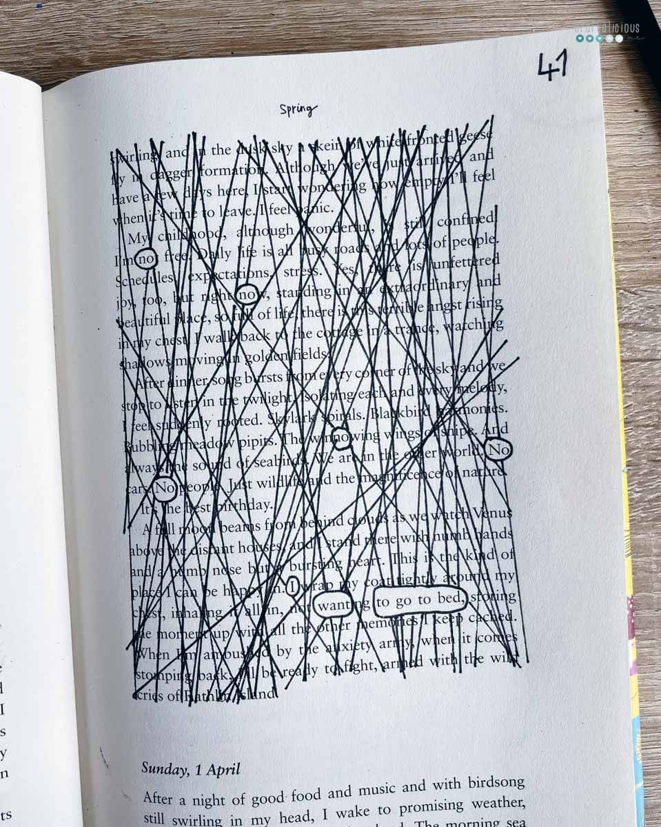 CraftingWordless Wednesday #28TobiaNovember 26, 20256 comments1 minute read Sharing some of my black-out poetry on wordless Wednesday for you to enjoy. No. No. No. No. No. I want to go to bed. Materials used: black ball pen, rulerCreated on: April 4, 2023 Related Topicsblackout poetry Previous Article Crafting Wordless Wednesday #27 TobiaNovember 19, 2025 Read Post Next Article Crafting Paper Ball Wreath TobiaNovember 27, 2025 Read Post 6 comments I love this so much, Tobia. Your blackout poetry pieces are brilliant! Reply Makes my day. Reply This is so cool. I’ve never seen something like it before. Love it – and I’ve been there. Reply Thank you. It’s a fun project I did. Reply I really like this one! Reply Thank you. Happy you like it. Reply Leave a Reply Cancel replyYour email address will not be published. Required fields are marked *Comment * Email me when someone replies to my comment I accept that my given data and my IP address is sent to a server in the USA only for the purpose of spam prevention through the Akismet program.More information on Akismet and GDPR. Name * Email * Website By using this form you agree with the storage and handling of your data by this website. To prevent misuse and to keep an overview of public comments name, e-mailadress, IP-adress and time stamp as well as the comment itself will be saved. * Δ